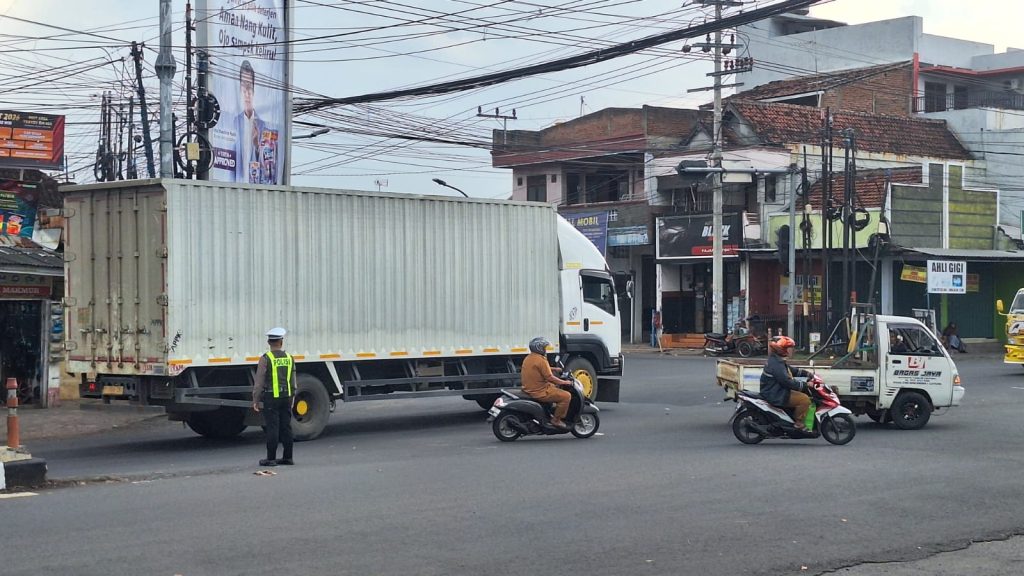 Pengaturan dilakukan terutama di persimpangan jalan utama yang kerap dipadati kendaraan roda dua, mobil pribadi, hingga kendaraan angkutan barang. Dalam kegiatan tersebut, petugas tampak sigap membantu kelancaran arus kendaraan serta memastikan pengguna jalan dapat melintas dengan aman dan tertib.